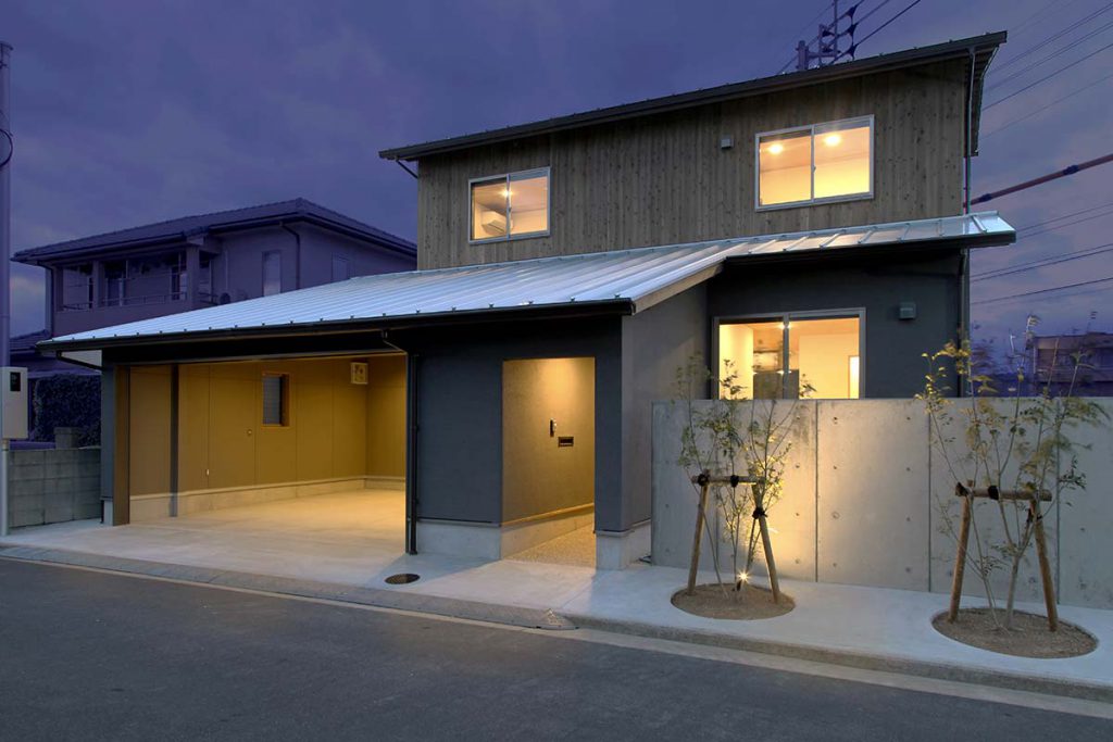 生活の中心に壁一面が書棚の土間があることで、趣味と暮らしを融合させることで自分達らしい「いきいき」とした暮らしを創造しています。外壁は経年変化する塗料(特殊塗料:味のある経年変化の木質感を表現)を採用する事で、年月を重ねるごとに趣が感じられます。内部は無垢材をふんだんに使用する事で、月日を重ねるごとに家族の生活に愛着のある憩いの場となります。