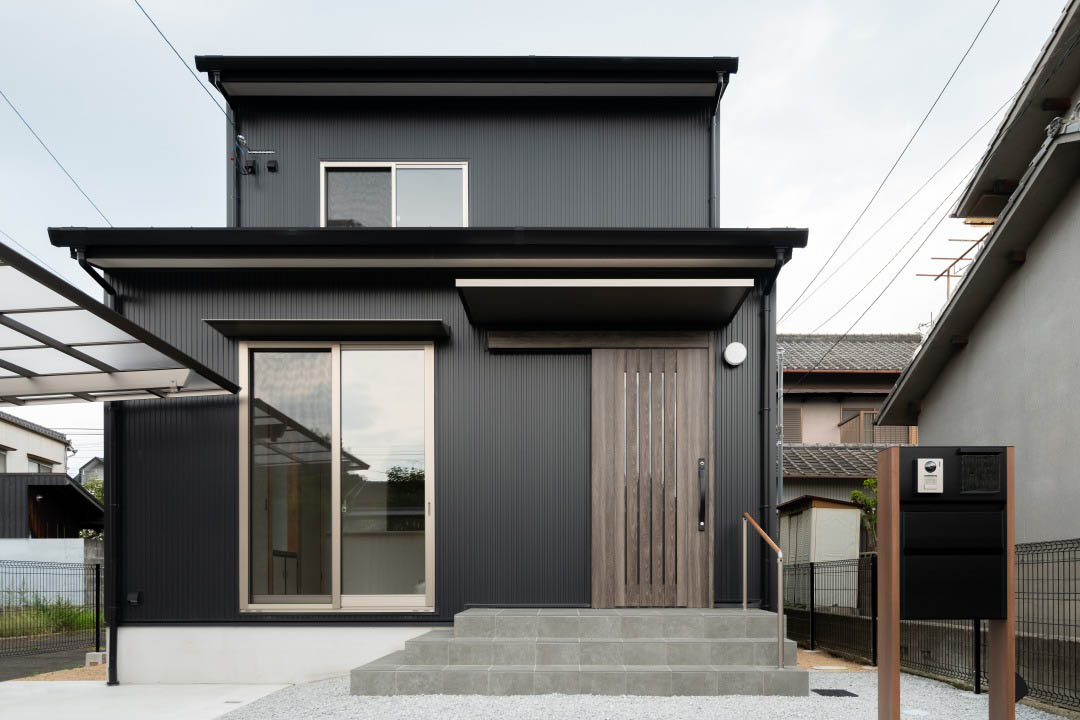 ナチュラルモダンスタイル この住まいは、外観・内観ともに木目・モルタル調・アクセントに黒を採用したナ…