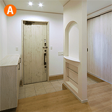 サニタリーへはキッチン横の廊下から直結していますので、お台所仕事をしながらのお洗濯も可能です。また、洗面スペースの洗濯機から屋外のサンルームへ→サンルームから直接ウォークインクローゼットへ。主婦であれば誰でもがあこがれる理想的な家事動線を実現しています。 現在大小2部屋ある子供部屋は将来大きな部屋を2部屋に仕切れるようにドア・クローゼット・スイッチ・窓それぞれ2つ設置されています。また、家族の思い出をたくさん飾れる多くのニッチも特徴の1つです。